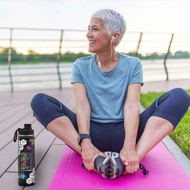 A new and interactive way to track your 2025 Challenge milestones. Take it with you every mile and stay hydrated! The RTE Badges Bottle is 25oz, double-walled stainless steel to keep your liquids cold or warm.